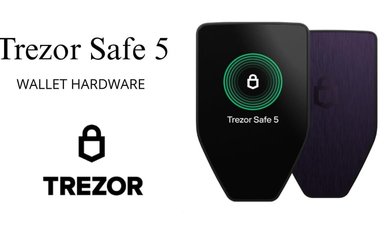 Trezor Safe 5 - Cartera de hardware criptográfico con elemento seguro y frase de contraseña, pantalla táctil a color y retroalimentación háptica.